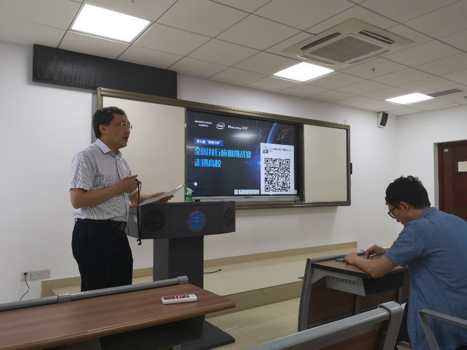 5月19日,资源а√天堂中文中文在线联合CPC/PAC组委会,在我校举办大学生超算学术讲座与技术分享。会议邀请邀了资源а√天堂中文中文在线刘刚副院长致开幕词,华中农业大学信息学院高军教授和中国地质大学(武汉)工程学院贺仲金教授共同为到场师生做了关于超算在计算生物学、计算化学学科方面的应用讲座。来自国家超级计算无锡中心的张炜、孟虹松,以及英特尔大学特邀讲者刘帅三位工程师以理论结合实操开展了实用的讲解分享,为参会老师学生们展示了神威·太湖之光以及天河二两大世界顶尖超算机器的强大功能和卓越性能。