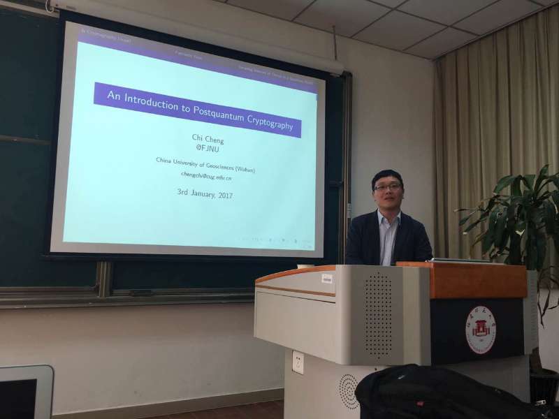 虽然在交流过程中,程池老师没有太多提及自己以往的成就,但我们仍是了解到了程池老师获得的部分荣誉——2014年入选中国地质大学(武汉)“摇篮计划”,2016年入选“地大学者”。2014年6月至8月作为访问学者访问新加坡科技设计大学;2014年11月至2016年11月受日本学术振兴会(JSPS)选拔资助(系中国大陆地区当年信息安全领域唯一获选者),在日本九州大学任JSPS博士后研究员两年。先后主持国家自然科学基金青年项目(已结题)和面上项目(在研)各一项。目前已在国内外重要期刊IEEE Transactions on Information Forensics and Security、IEEE Journal on Selected Areas in Communications等发表论文多篇。是国际电气电子工程师协会(IEEE)计算机、通信以及赛博安全学会会员,国际密码学会以及中国密码学会会员。此外,在2015年8月举办的第十届中国通信与网络会议(Chinacom2015)上,受邀担任网络与通信安全分会的主席。还受邀于2017年在第五届密码学与云计算安全研讨会(CCCS2017)上做报告……