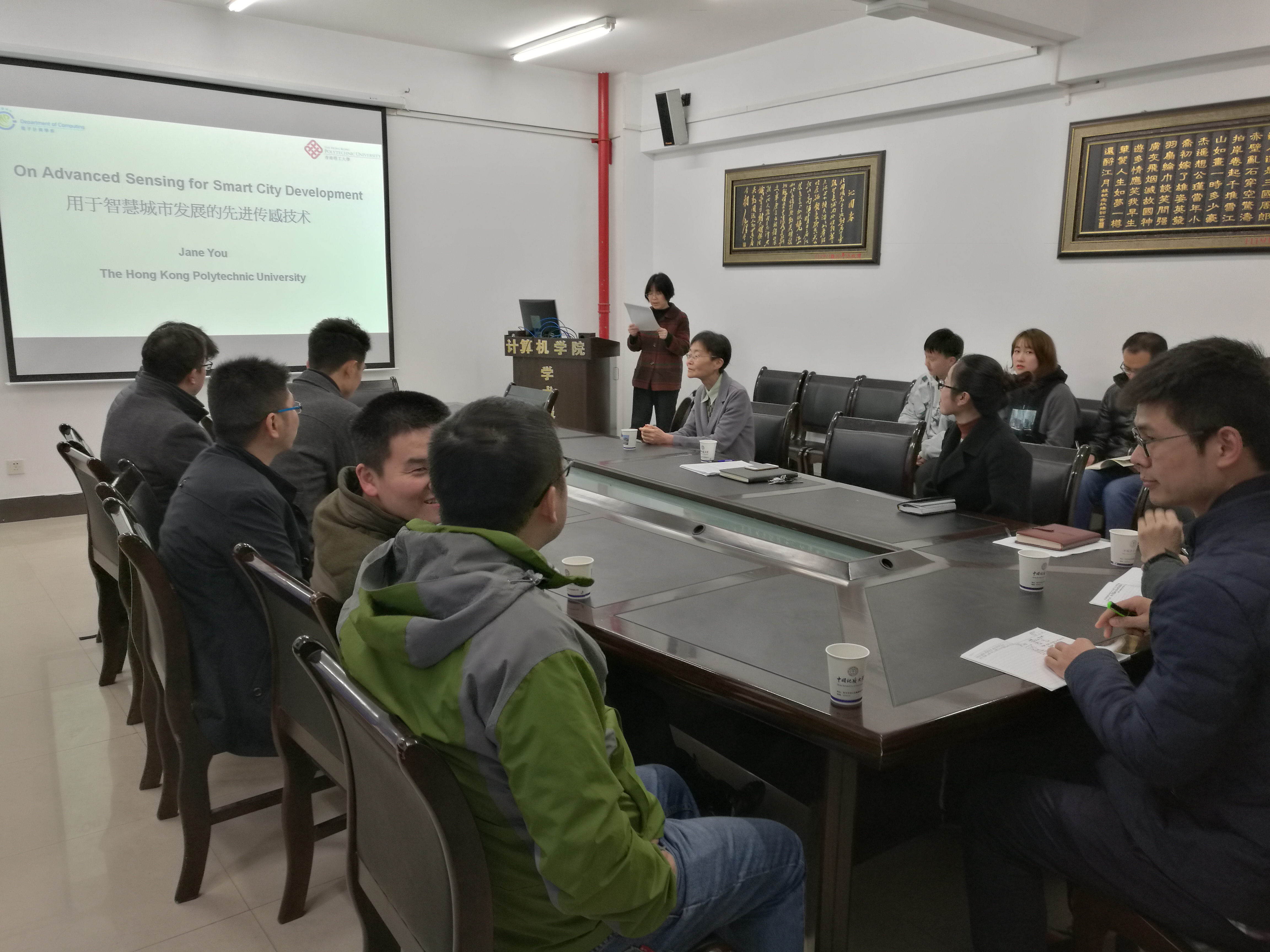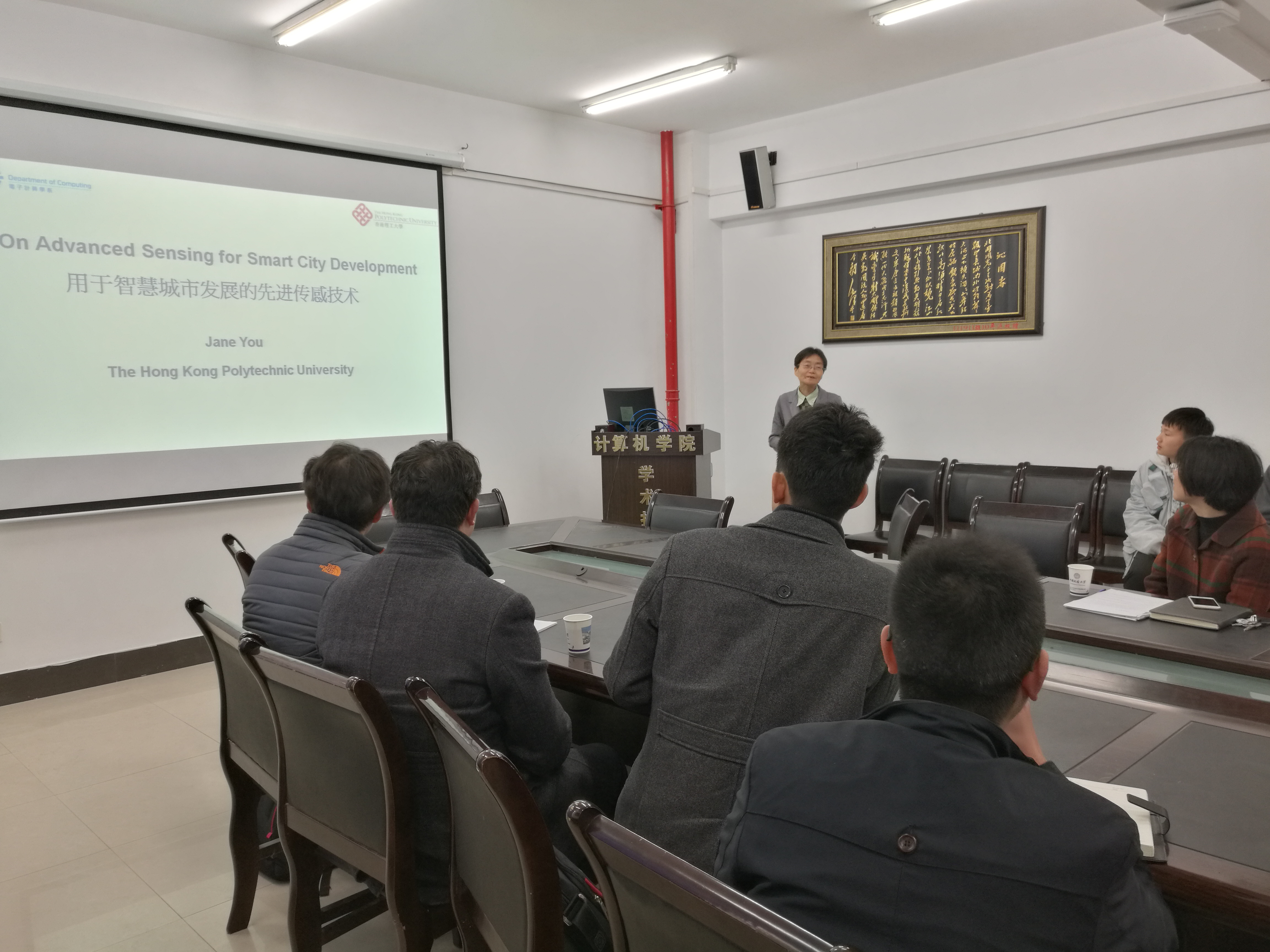 3月22日,应资源а√天堂中文中文在线李小燕老师的邀请,香港理工大学电子计算机系尤佳教授来我院访问,并做了题为“On advanced sensing for smart city development”的学术报告。尤佳教授于1986年获得西安交通大学电子工程专业本科学位,于1992年获得澳大利亚拉筹伯大学计算机科学专业博士学位,1993年至2002年任职于南澳大学和格里菲斯大学,自2003年任职于香港理工大学电子计算机系。她的主要研究方向是图像处理、模式识别以及医学数据分析,开发了很多系统并获得了很多国际大奖。已发表的学术论文有280余篇。尤教授还是人才培养的专家,已指导香江学者四名,其中两人回国后入选优青,一人回国后入选国家级人才计划。报告在张冬梅副院长的介绍下隆重开始。