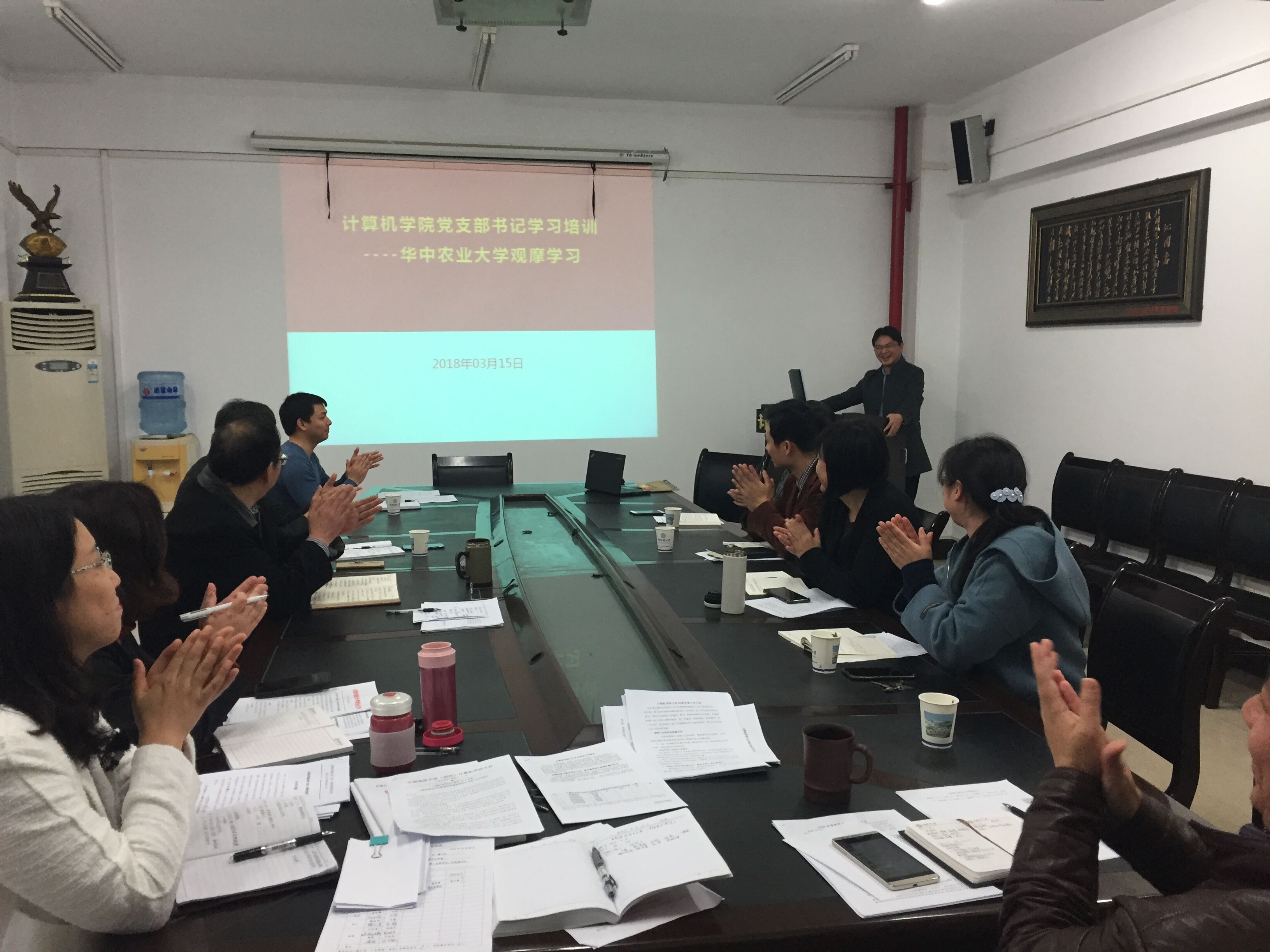 (通讯员:石剑峰)3月15日下午15点30分,资源а√天堂中文中文在线组织了教工支部书记培训会议。应用系支部书记何珍文同志作了“华中农业大学理学院党建工作观摩学习经验交流”。院党委书记吕军同志讲授了一堂“落实支部书记主体责任”微党课。全体院领导、党委委员、教工支部书记、学生党建办负责人、组织秘书参加培训。