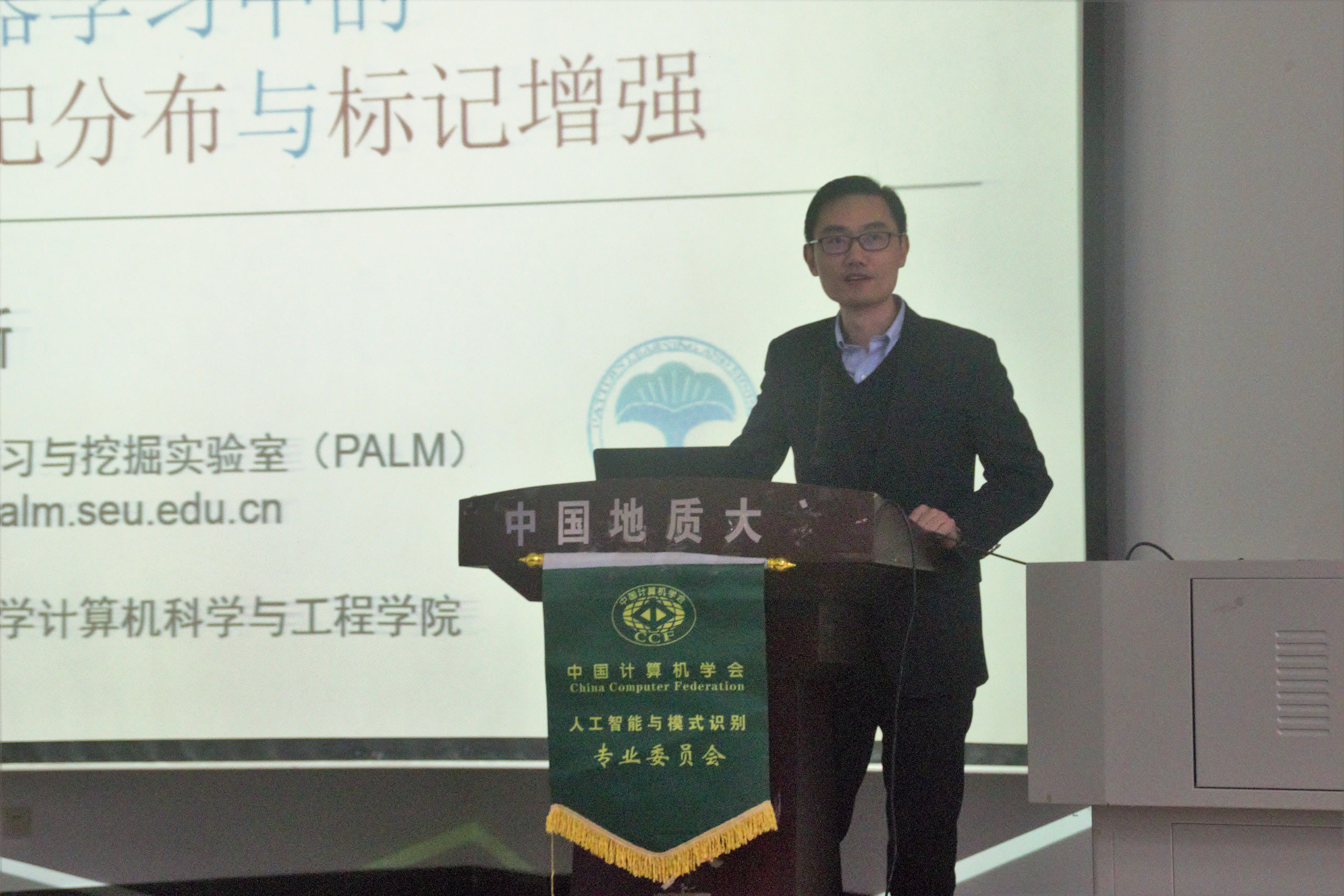 此次报告会,天津大学胡清华教授、北京交通大学于剑教授、东南大学耿新教授应邀作学术报告。胡清华教授的报告题目为:考虑数据分布特性的机器学习算法;于剑教授的报告题目为:机器学习:从公理到算法;耿新教授的报告题目为:机器学习中的标记分布与标记增强。来自中国地质大学、武汉大学、武汉理工大学、中南财政政法大学、中南民族大学、武汉科技大学、湖北工业大学、江汉大学、武汉工程科技学院、湖北经济学院、荆楚理工学院、武汉京天电器有限公司、米字能源科技有限公司等单位的近150名师生及企业技术人员共同参加了本次系列活动。