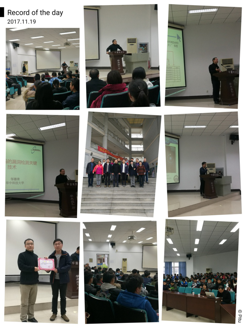 (通讯员:章丽平)11月19日,由资源а√天堂中文中文在线信息安全系主办的网络空间安全及大数据研讨会在北一楼学术报告厅胜利召开。分别来自华中科技大学、武汉大学、海军工程大学、国家网络空间安全发展创新中心的邹德清教授、王骞教授、马良荔教授和王得金研究员等四位专家为广大师生们带来了精彩的报告,整个报告厅座无虚席,充满了浓厚的科研气氛。