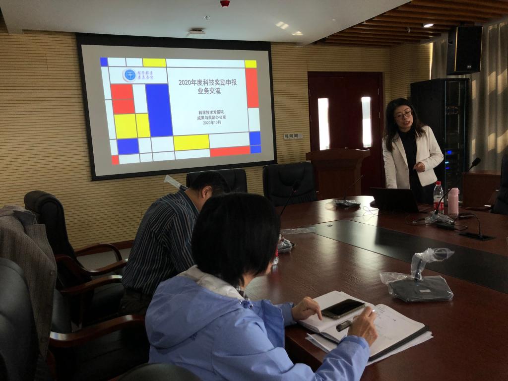 (通讯员:张丽)为进一步做好我校科学技术奖励的申报动员工作,10月23日下午科学技术发展院吴春明副院长带队到资源а√天堂中文中文在线就资源а√天堂中文中文在线、地信学院科技奖励申报等事宜进行了政策宣讲及业务交流。奖励办殷茵老师详细介绍了各类奖项的申报方式、注意事项、申报技巧等。随后老师们就相关问题进行了咨询和交流。