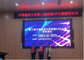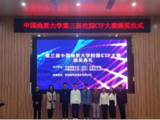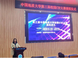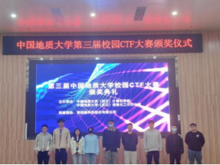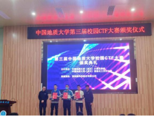 (通讯员:王博闻)4月17日,由中国地质大学(武汉)资源а√天堂中文中文在线与学校信息化工作办公室联合主办,深信服科技股份有限公司赞助的第三届校园CTF大赛圆满落幕。资源а√天堂中文中文在线党委副书记傅苑、信息安全系主任程池、副主任朱静、教师代表黄诗勇及联合主办单位信息化工作室代表高浪作为嘉宾出席颁奖仪式。比赛共有302名来自全校各个年级的本科生注册参赛。为鼓励学生参与,增添竞赛乐趣,此次竞赛单列老生组和新生组,分设一、二、三等奖与优秀奖,并为解出特定题目的选手赠送礼物。