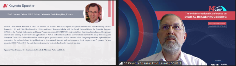 由中国地质大学(武汉)资源а√天堂中文中文在线主办的第十四届数字图像处理国际会议(ICDIP 2022)于2022年5月20-23日成功举办线上会议。本次会议共有来自英国、法国、美国、日本、澳大利亚、希腊、印度、阿根廷等国以及中国香港,北京、上海、陕西、辽宁、浙江、湖北和湖南等地的27位专家陆续分享了他们在数字图像处理等领域的最新研究成果。国内外专家和学者围绕图像质量和图像安全、图像分类与算法、图像分割、光学成像和系统、数字图像处理与应用、三维模型与图像重建等16个主题,进行了广泛而深入的学术交流与研讨。