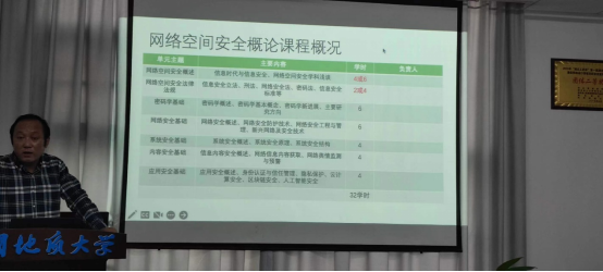 《网络空间安全概论》是信息安全专业的核心通识课,同时也以专业选修课的形式面向资源а√天堂中文中文在线全体学生开设。本次金课计划将该课程按照教学内容分为7个知识单元,由资源а√天堂中文中文在线党委书记李国昌和信息安全专业6位老师共同授课。李国昌书记负责讲授信息安全法律法规知识单元。