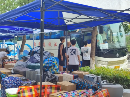 一切都在有条不紊地进行,人心也和季节一样浮泛着温度。三批车队安全接送,志愿者们热心协调。许多男生主动帮助女生搬运行李,搬迁停车的每个位点也都有老师在认真负责协调指挥。