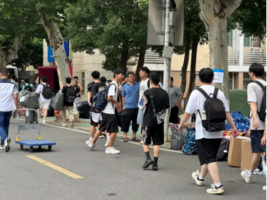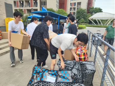 一切都准备就绪,这是一场关于速度的角逐,也是一场展示温度的盛宴。夏日炎炎,为赶在正午日头最盛前完成搬迁,我院早早便做好了部署,只为展现最周到的服务。不仅有学院领导到场指挥,还有许多班主任和老师们在默默支持、协助。