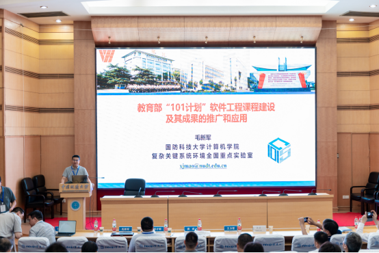 国防科技大学毛新军教授作题为“教育部“101计划”软件工程课程建设及其成果的推广和应用”的特邀报告。“101计划”是教育部在部分高校实施的计算机领域本科教育教学改革试点工作计划。毛教授首先对“101计划”的使命、任务和组织进行了详细介绍,然后重点介绍了在软件工程课程建设方面的工作、进展和成果,最后围绕“如何应用“101计划”成果”与现场观众做了分享。