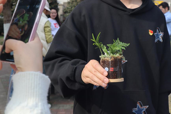 现场人员都制作了一份属于自己的苔藓植树微景观,大家不仅在校园的大地上种植大树,还携带一份小树提醒自己时刻养护,保护环境。