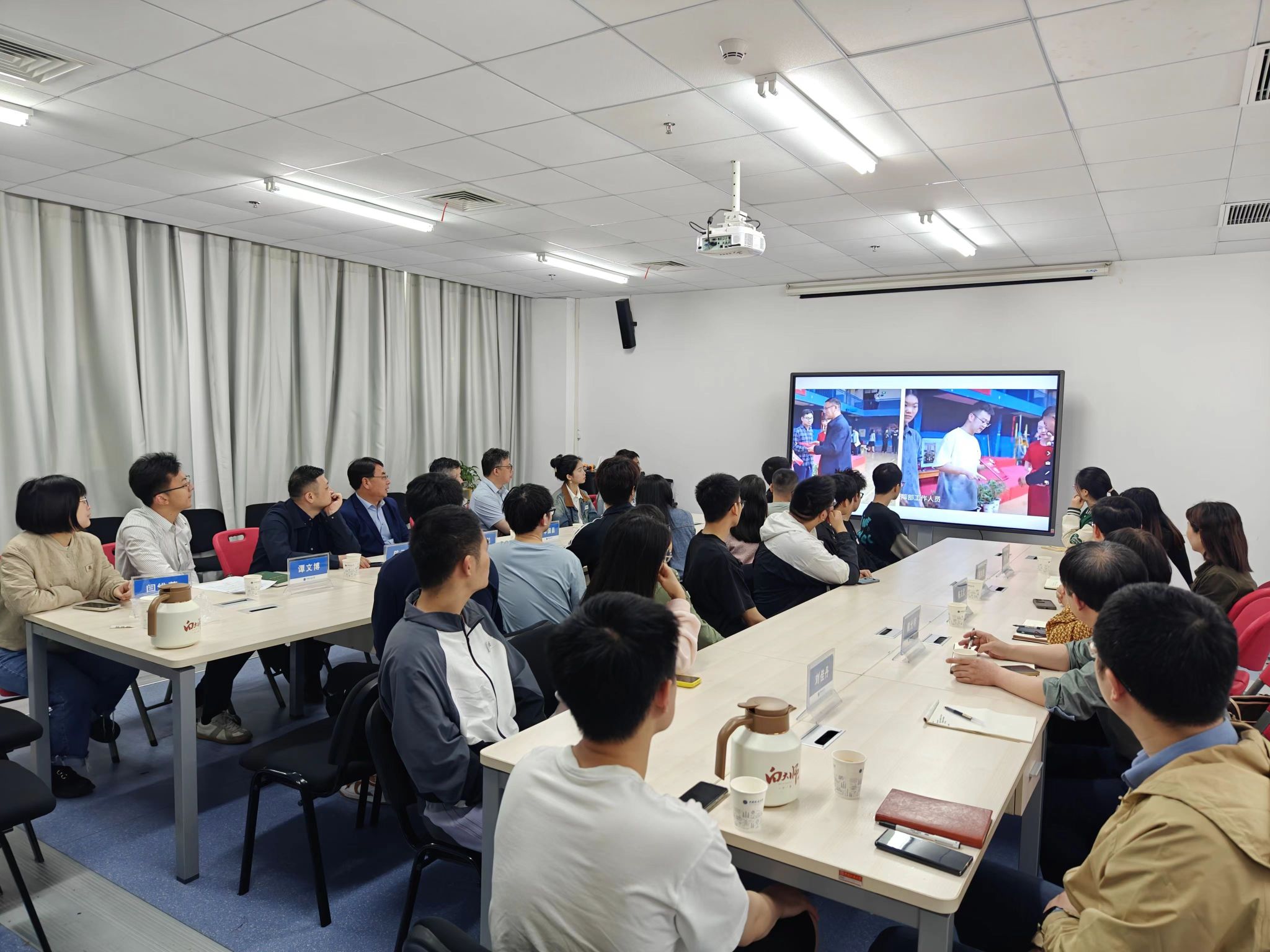 校党委常委、组织部部长陈文武,未来城校区管理办公室主任王文起,学院党委书记李国昌、院长张洪艳、副院长陈云亮、副院长胡成玉、党委副书记林小艳,湖北省教学名师资源а√天堂中文中文在线戴光明教授,全体辅导员,23名本研学生代表参加。