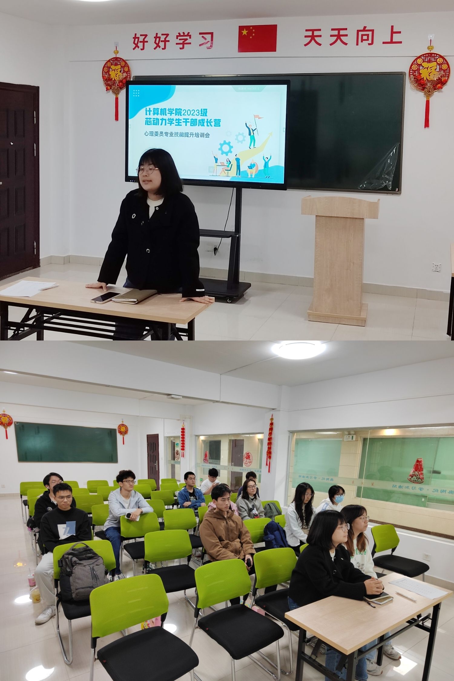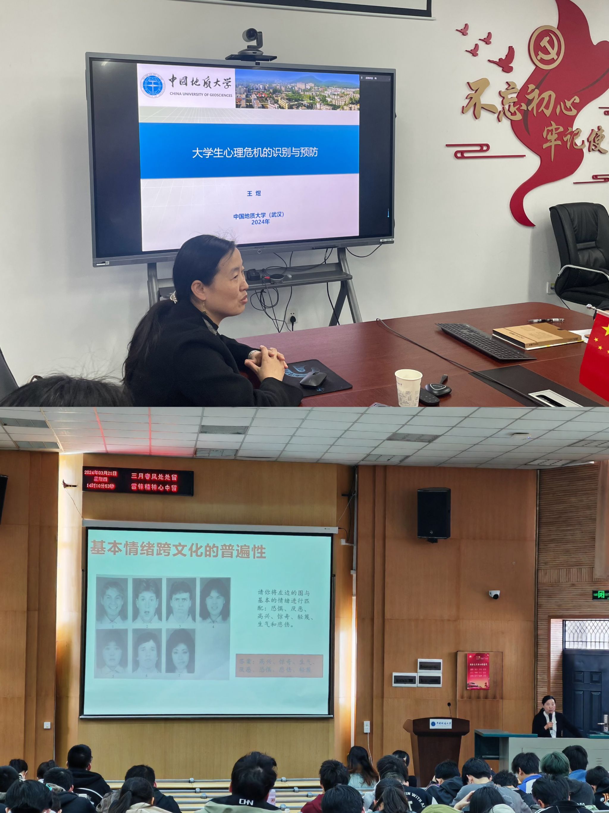 3~4月,学院邀请心理健康中心王煜老师针对不同群体打造了两场心理健康专题讲座。为帮助老师们更好地了解和识别学生可能面临的心理危机,掌握有效的预防和干预措施,面向全院班主任开展《大学生心理危机的识别与预防》讲座。为引导学生学会科学管理情绪,培养积极向上的心态,面向2023级全体本科生开展了《做情绪的主人》专题讲座。为营造积极向上的学院氛围提供了坚实的理论保障。
