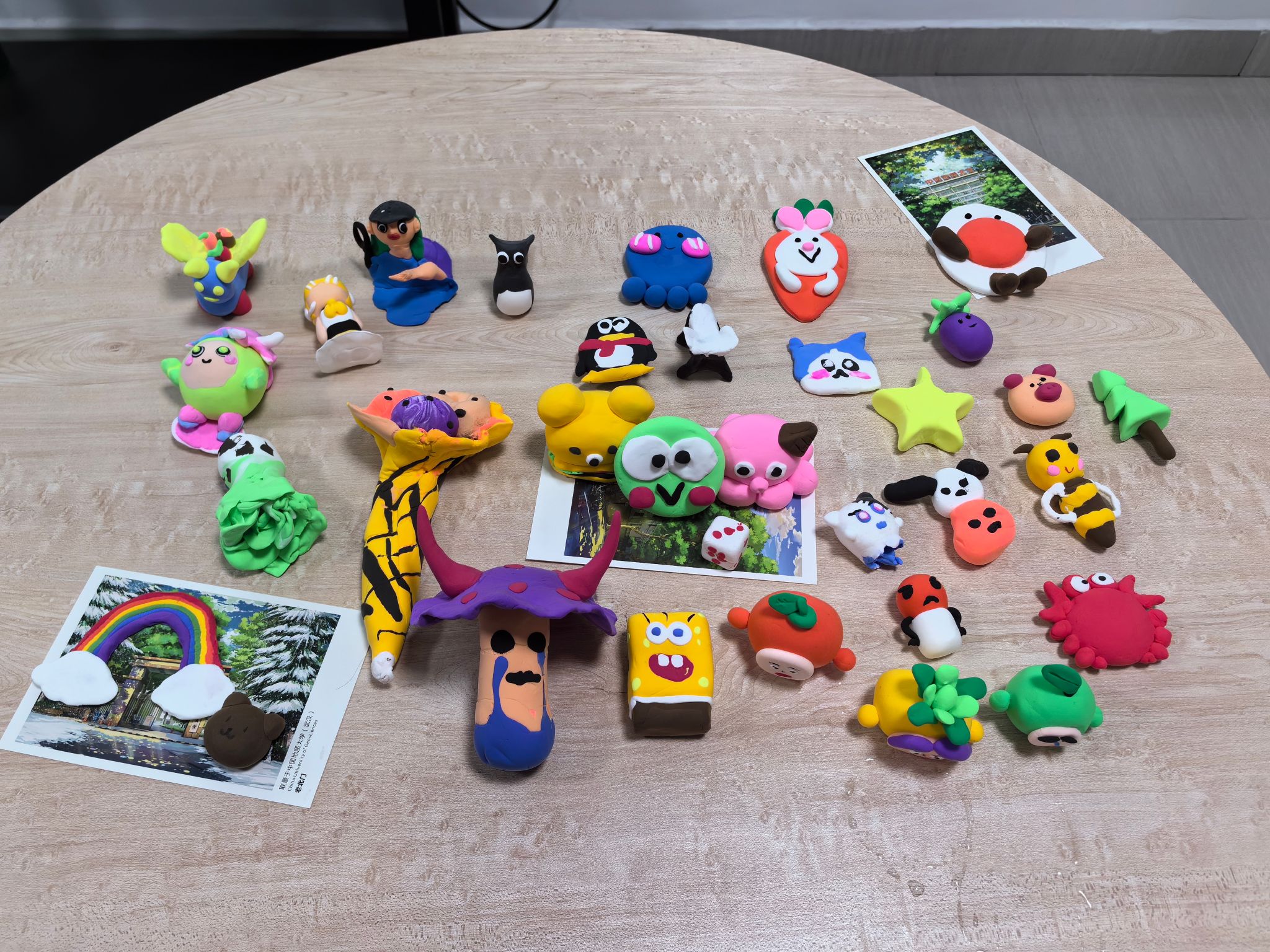 李紫晗同学:我捏了三个形象,一个是“好吃懒做爱睡觉”的小猪,一个是“代表希望”的星星,最后一个则是充满生机、长青的松树,希望自己能更为勇敢地体验生活中的每一场风和日丽和雨大风急。