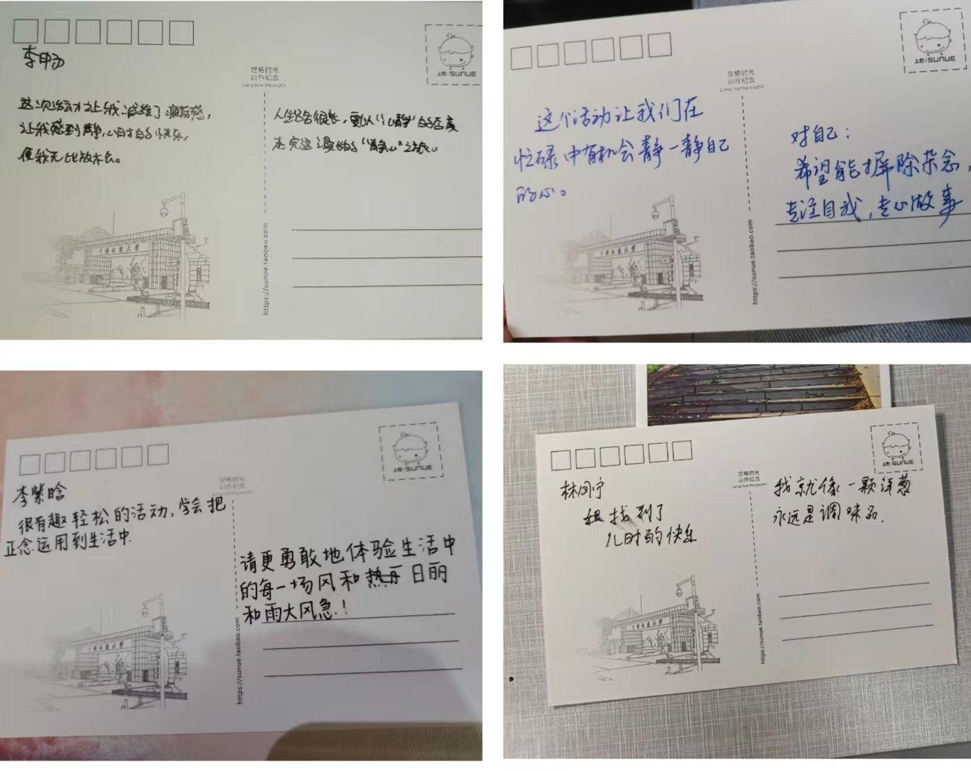 活动最后,闫维蓉给每位同学发了明信片,让同学们写下对此次活动的感受以及想对自己说的话。同学们拿起笔在明信片上记录,字里行间不仅是对活动的感受和未来展望,更是对自我认识的深化和激励,坚信CSer终将实现明信片中的美好祝愿。