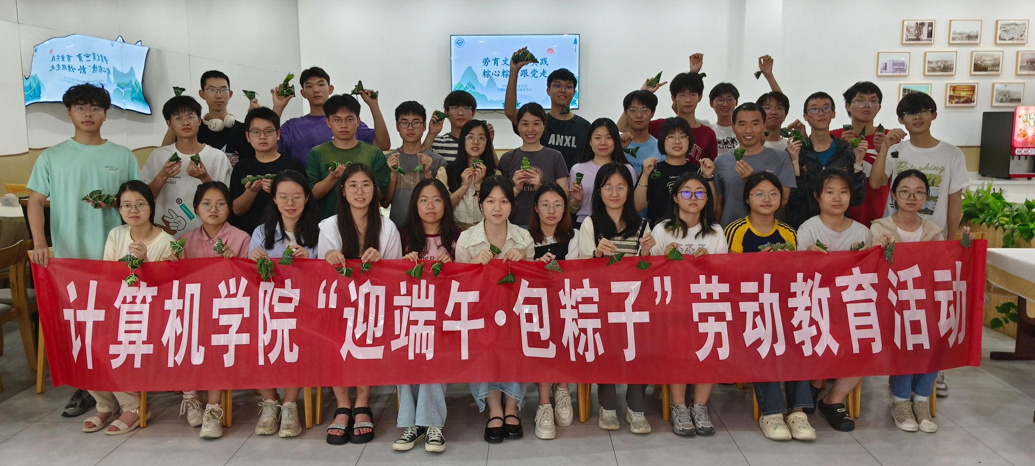 为进一步弘扬和培养爱国主义精神,传承中华优秀传统文化,贯彻劳动育人精神,丰富大学生的校园文化生活,6月10号下午,资源а√天堂中文中文在线与接待服务中心党支部在震旦园教工餐厅共同开展“迎端午·包粽子”劳动教育活动。资源а√天堂中文中文在线党委副书记、纪委书记林小艳,团委书记王太茂,团委副书记闫维蓉,辅导员刘佳丹及2023级30余名学生参加,活动由接待服务中心党支部书记吴华玉主持。