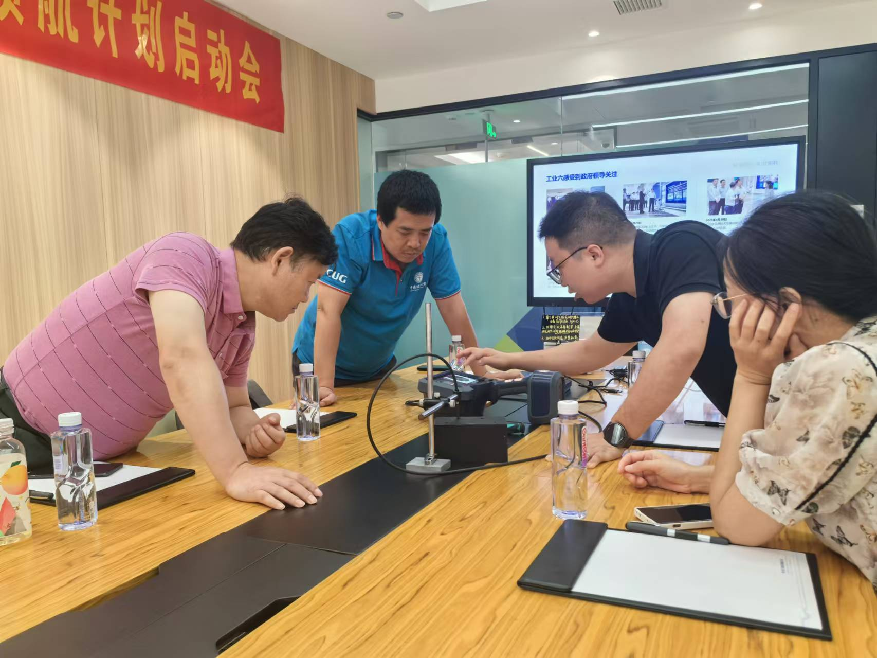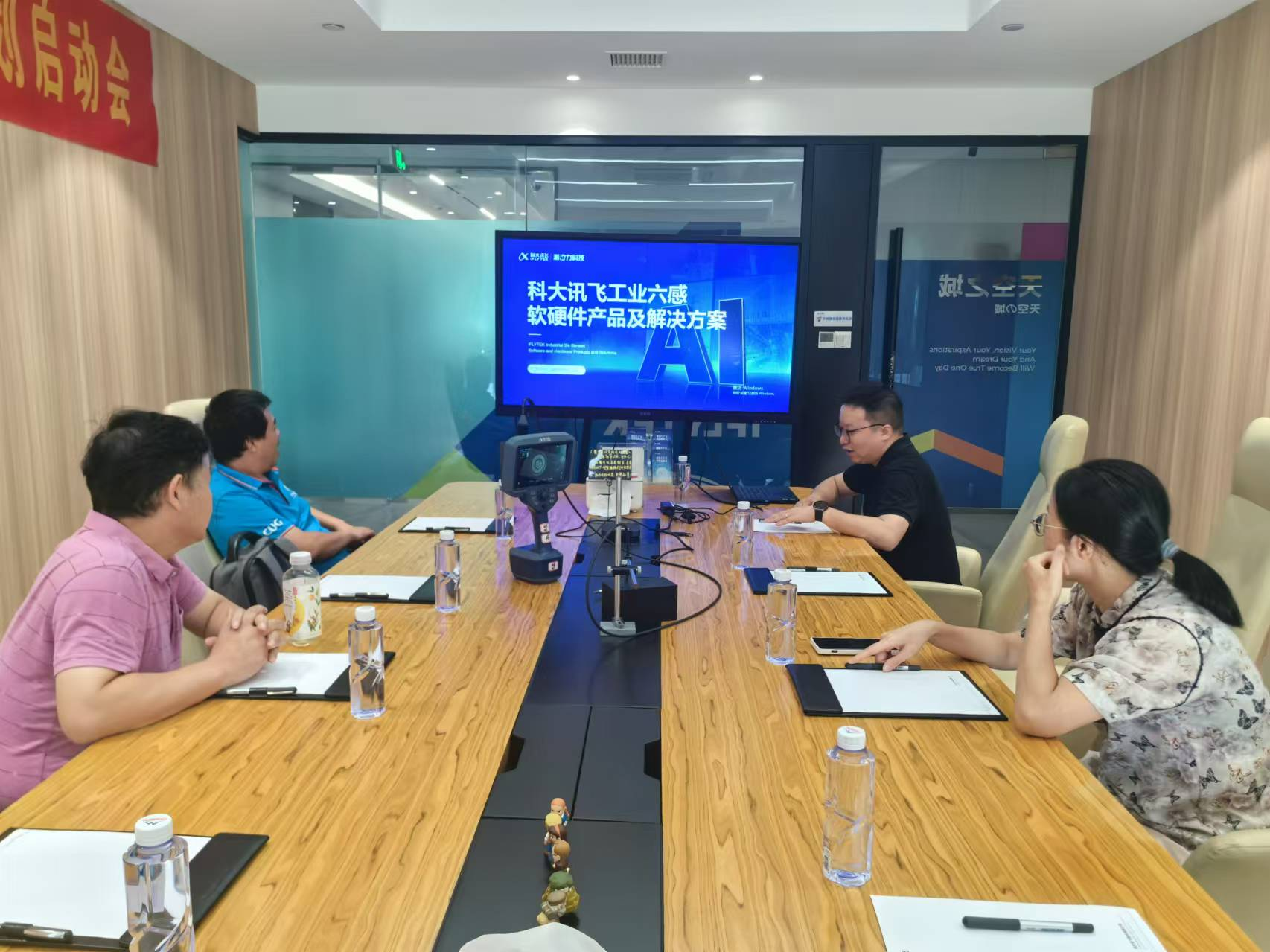 8月12日下午,科大讯飞工业智能研究院。研究院副院长、学院2007级校友李俊对参访团一行表示热烈欢迎,并陪同参观了公司展厅,体验了科大讯飞赋能教育、医疗、城市、工业等行业的成效。李俊还重点介绍了科大讯飞工业六感软硬件产品及解决方案,老师们还现场体验了工业内窥镜的神奇之处。双方就实习实训、校企合作等内容进行了深入交流。