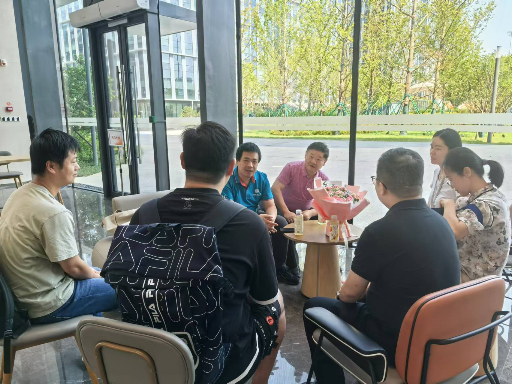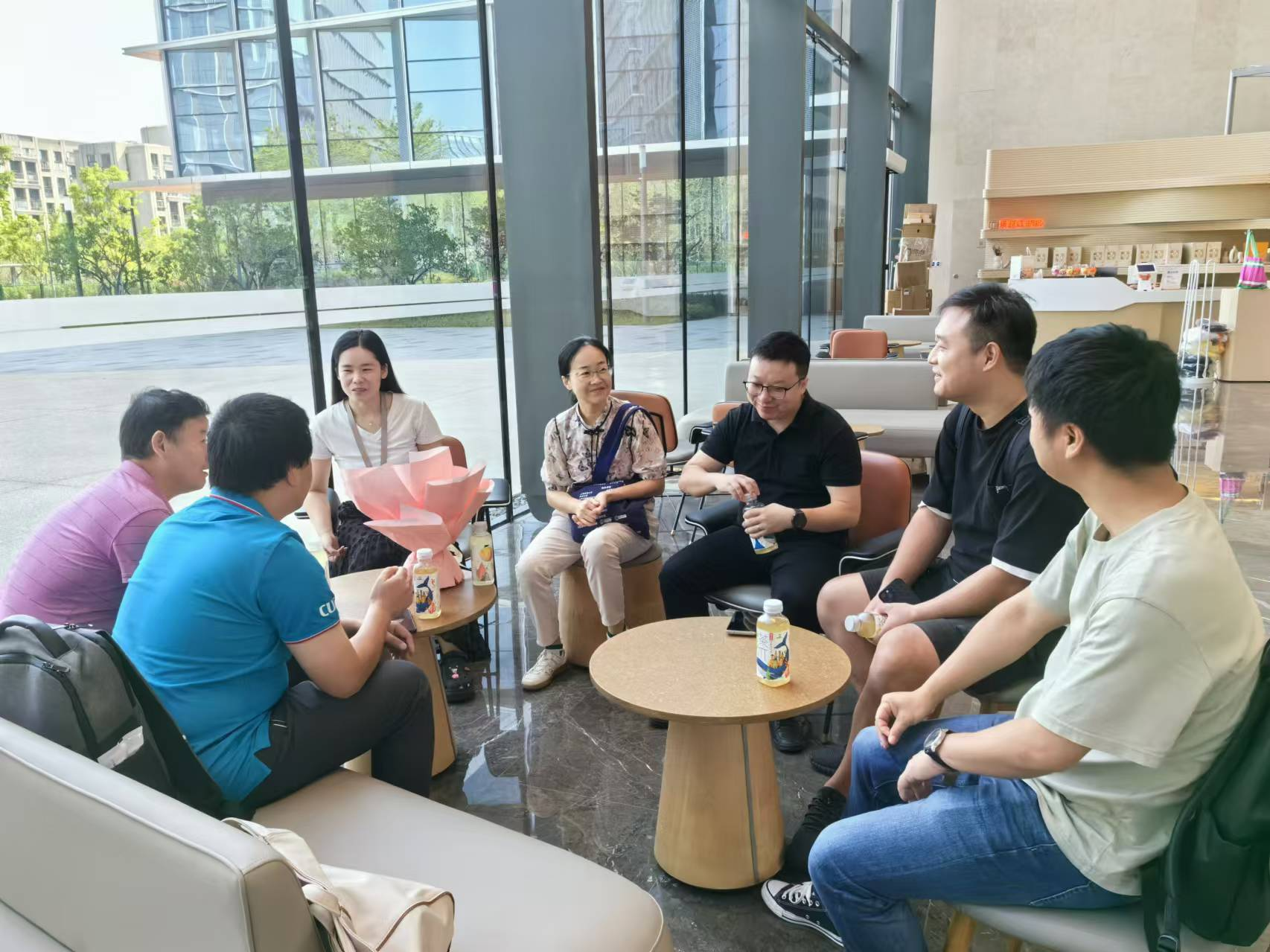 8月12日上午,杭州阿里巴巴。阿里巴巴作为互联网大厂,深受计算机专业毕业生的青睐,学院也有很多毕业生就职于杭州阿里巴巴。走访团一行与2005级校友郭思涵、荣大俊,2009级校友郭琼琼,2013级校友任飞,2016级校友张文举,2017级校友胡家成进行了亲切友好会谈。校友们热情分享了在阿里巴巴的工作经历和对学弟学妹们以及学院发展的建议,李国昌关心校友们的工作情况和家庭情况,向校友们介绍了学院现在的发展情况,并热情邀请校友们回学院看看。