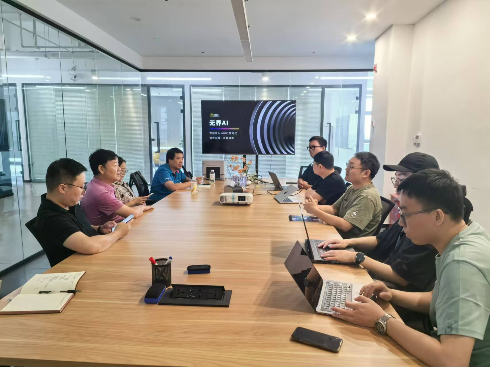 8月12日上午,杭州时戳信息科技有限公司。该公司成立于2014年,是国内领先的区块链信息与技术服务商,也是杭州市高新技术企业。公司董事长、学校2003级校友刘志鹏对走访团一行表示欢迎,并介绍了公司旗下品牌——无界AI的发展历程和应用情况。现场,老师们还体验了无界AI明星产品——无界魔镜,只要短短几秒钟,体验者就可以选择个性化的场景并生成精美的AI图像,现场还可以实时预览拍摄效果和快速打印。李国昌向校友介绍了地大和资源а√天堂中文中文在线的发展现状,双方就跨界创业、行业发展前景以及招聘需求等与企业进行了深入交流。