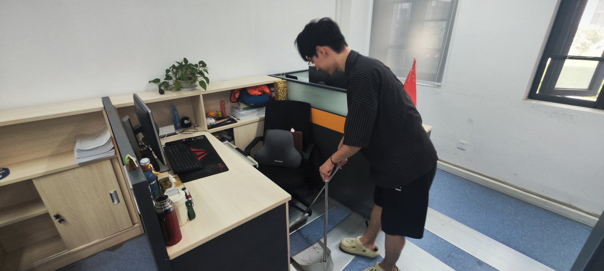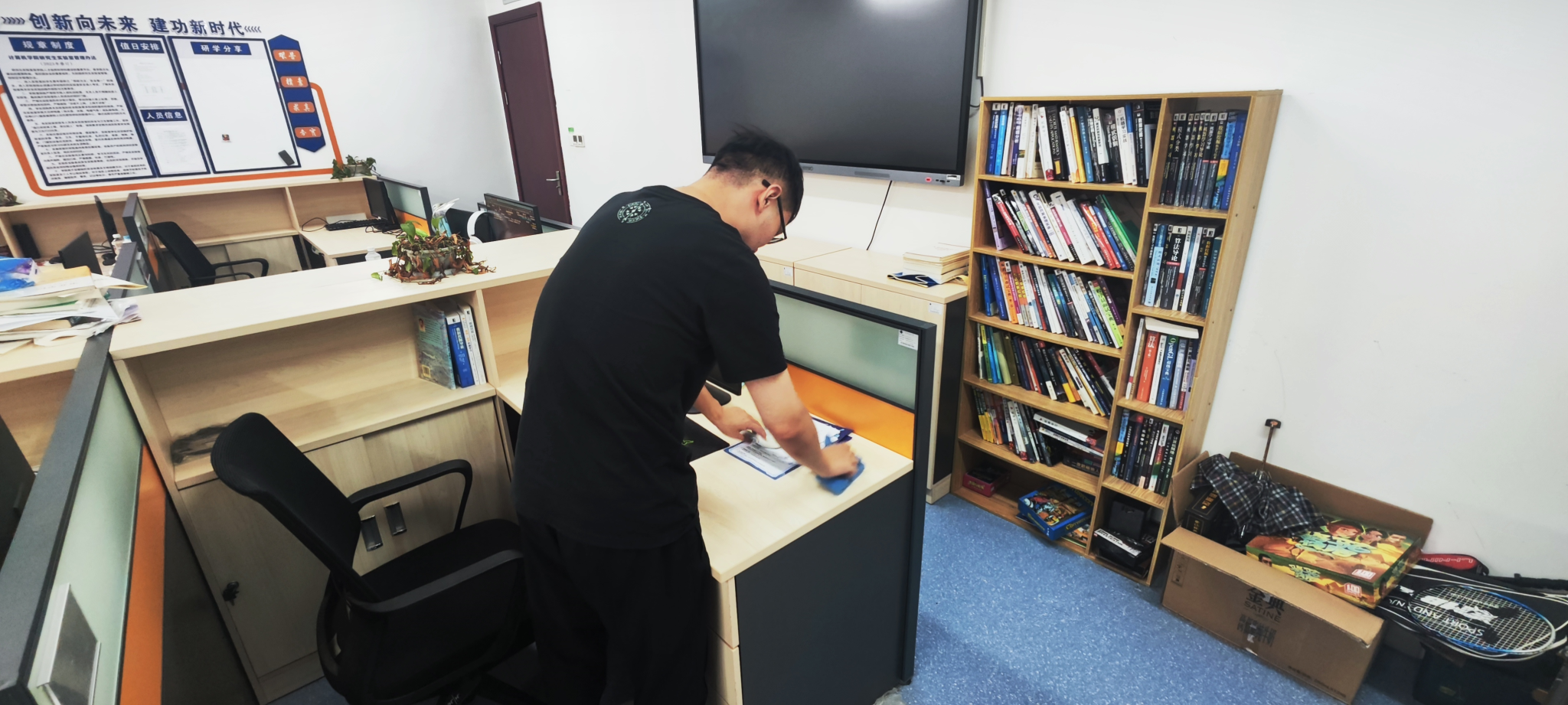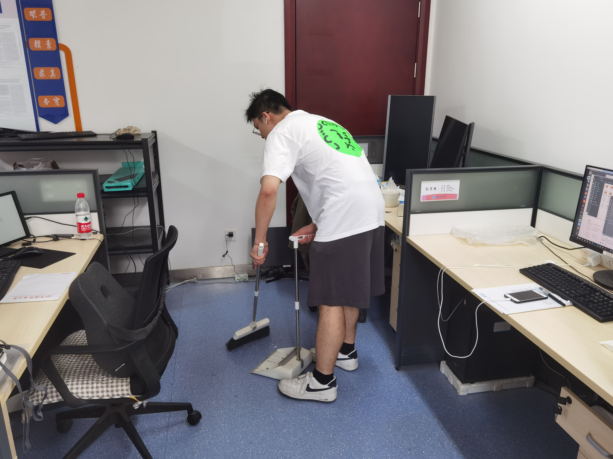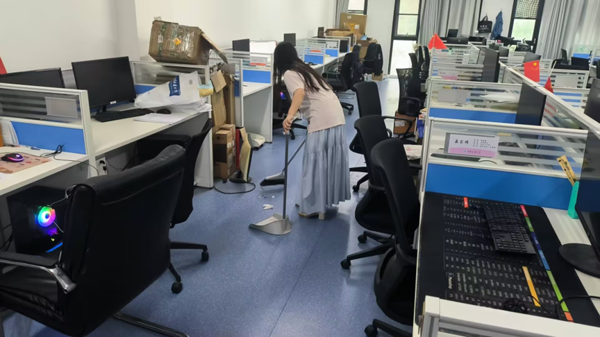 在打扫过程中,各实验室成员们分工明确,配合默契。有的负责清扫地面垃圾,有的负责擦拭桌面,还有的负责整理绿植。尽管天气炎热,但大家的热情丝毫不减,用实际行动诠释“劳动最光荣、劳动最崇高、劳动最伟大、劳动最美丽”的深刻内涵。