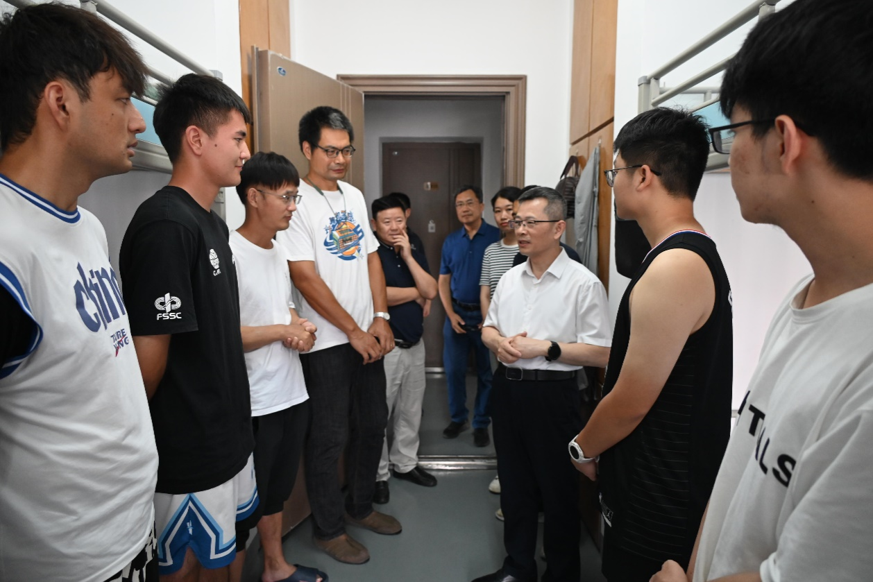 14日下午,李建威走访学生宿舍,并与我院在秭归开展实习的空间信息与数字技术专业的师生亲切交流。李建威详细询问了师生实习期间的住宿、饮食、出行安全等事宜,并叮嘱师生珍惜实习条件、用好实习资源、提升实习效能。