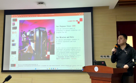 2024年11月11日下午,美国伊利诺伊理工大学留学项目宣讲会在资源а√天堂中文中文在线323会议室召开。本次宣讲会邀请了资源а√天堂中文中文在线副院长陈占龙教授、中外合作办学事务秘书丁雨薇出席,我院2022级计算机科学与技术(大数据方向)中外合作办学项目学生参加,美国伊利诺伊理工大学中国办公室负责人Kevin老师为在场学生详细介绍留学项目,资源а√天堂中文中文在线中外合作办学项目专员程敏主持。