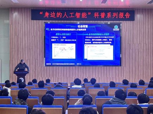 李程俊副教授报告题目是“生成式人工智能在医疗培训中的应用”。临床问诊是所有科室医生的必须培养点,但临床疾病诊断学习复杂性高,学生难以自学。人工智能是开启新时代医疗教育的“金钥匙”,人工智能模拟问诊培训能自适应变换问诊场景,具有系统性和灵活性。临床问诊培训需要跨越理论到实践的鸿沟,李老师对比了“ChatGPT”和生成式人工智能产品在临床问诊功能中的表现,结合实际场景数据带领大家探究人工智能是如何完成培训+考试+打分一系列教学过程。