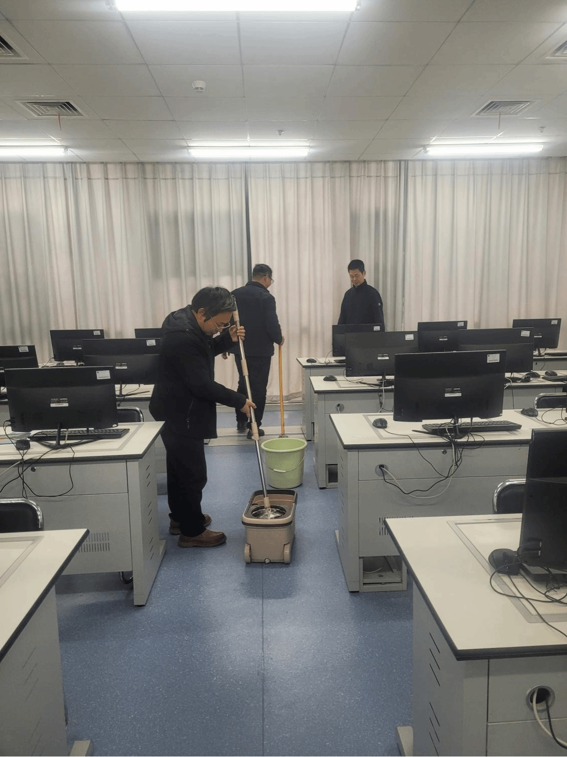 中心实验全体教师对我院的每个教学实验室进行了全面检查。深入到每一个角落,对实验场所、安全设施、基础安全、用电安全等方面进行了详细的专项检查。并对教学实验室进行了卫生打扫。