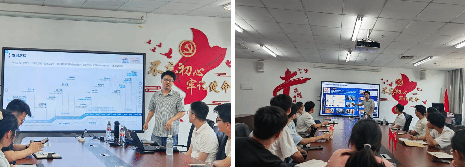 在互动交流环节,现场师生围绕大模型技术难点、行业应用拓展积极提问,卢聪总监结合海康实际案例,对模型训练效率提升、跨场景适配挑战等问题答疑解惑。海康威视湖北分公司的刘洪杰经理、丁瀚翔经理也参与了互动交流讲解。