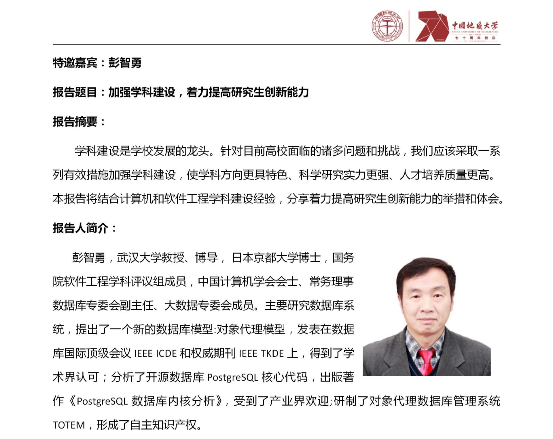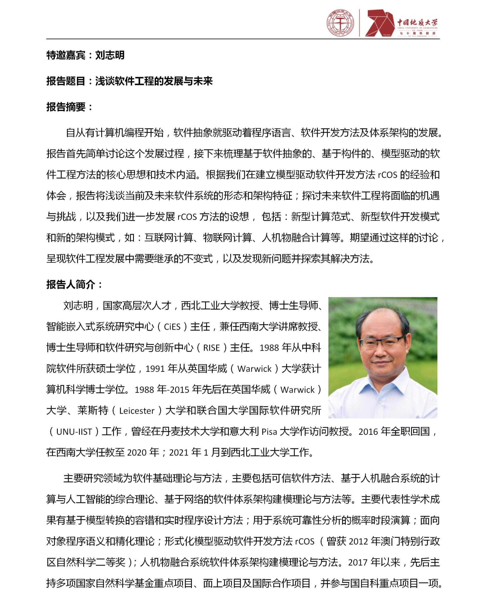 中国地质大学(武汉)70周年校庆学术活动之资源а√天堂中文中文在线软件工程学科发展与建设研讨会(第2期)