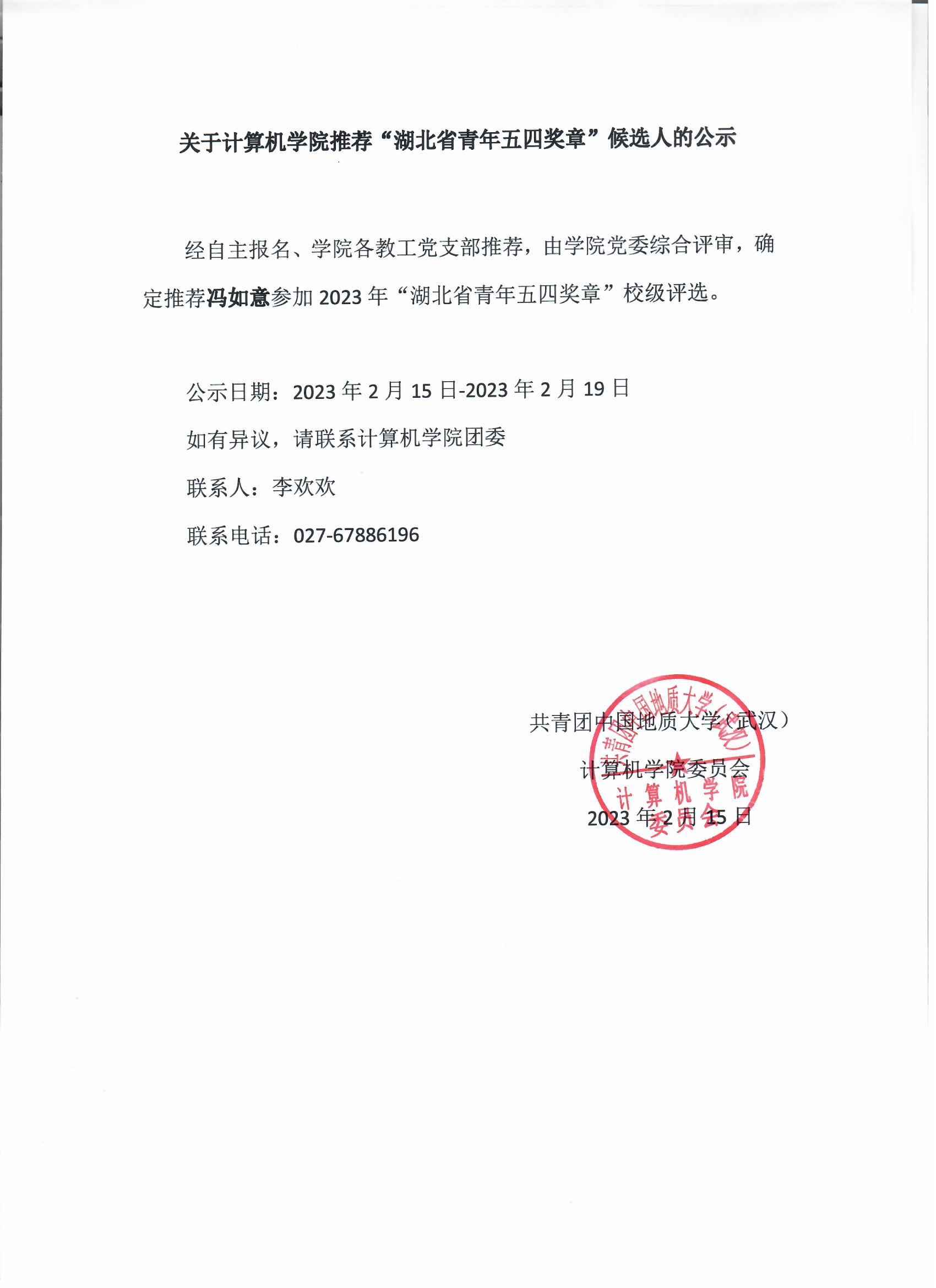 关于资源а√天堂中文中文在线推荐“湖北省青年五四奖章”候选人的公示