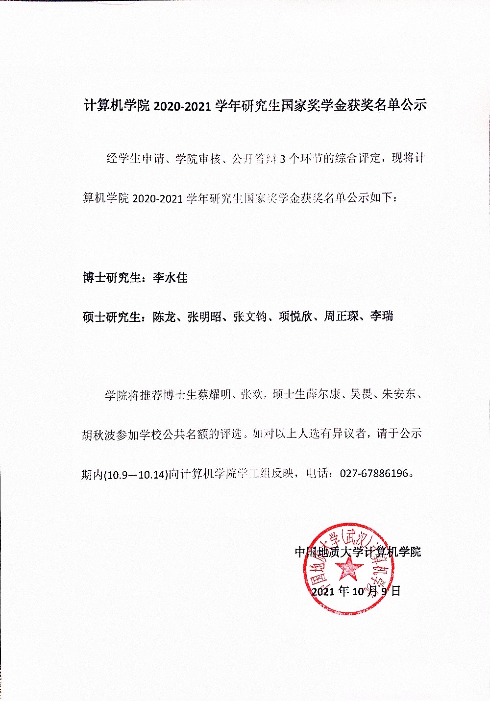 资源а√天堂中文中文在线2020-2021学年研究生国家奖学金获奖名单公示