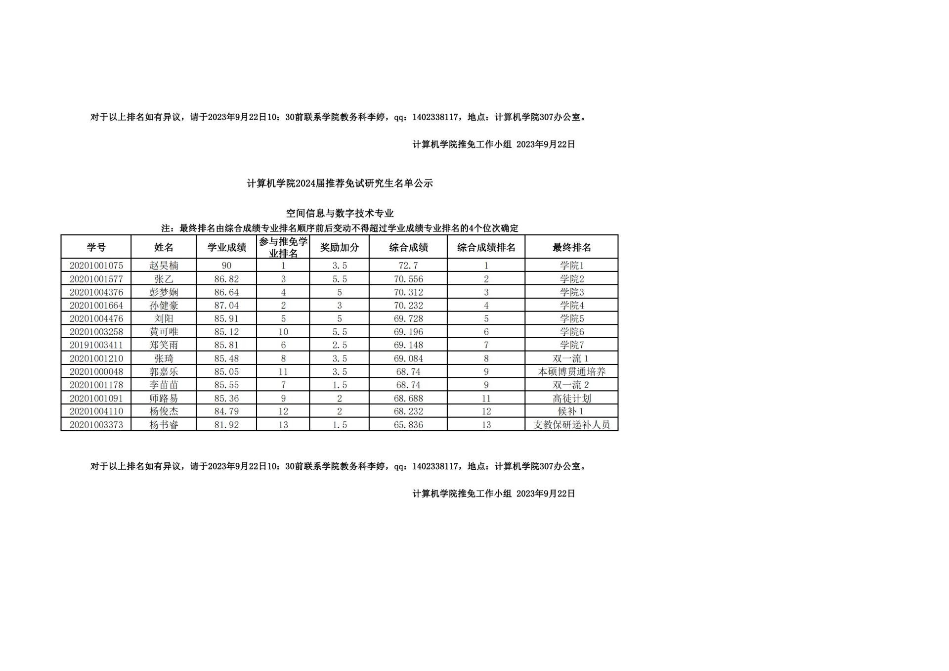 资源а√天堂中文中文在线2024届推荐免试研究生名单公示