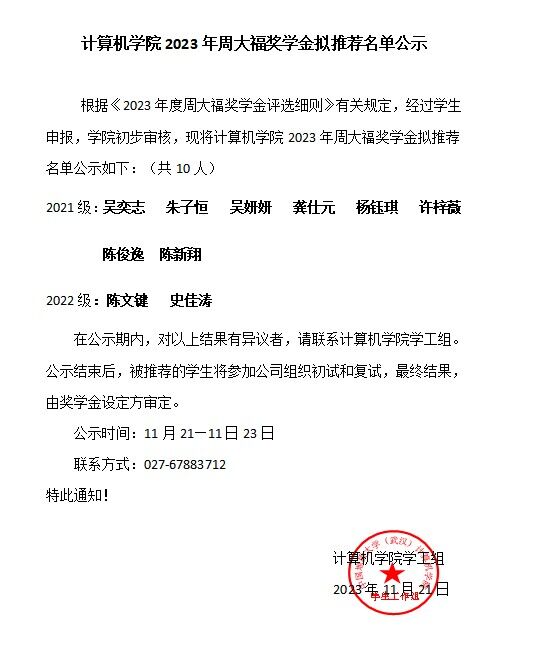 资源а√天堂中文中文在线2023年周大福奖学金拟推荐名单公示
