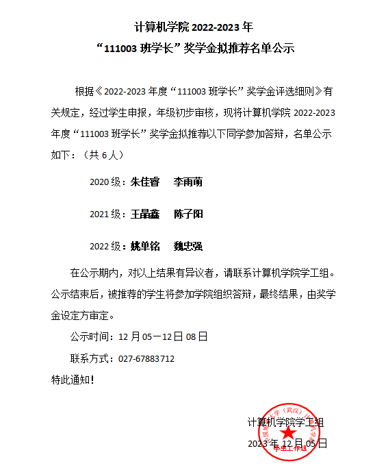 资源а√天堂中文中文在线2022-2023年“111003班学长”奖学金拟推荐名单公示