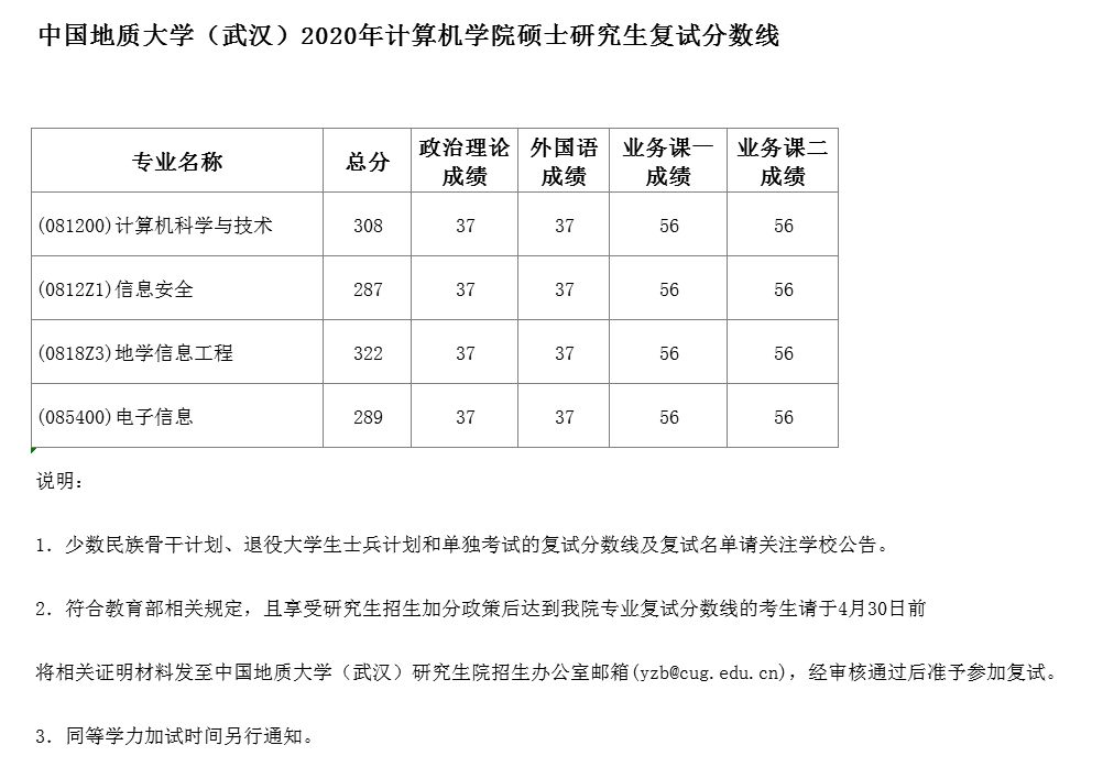 中国地质大学(武汉)2020年资源а√天堂中文中文在线硕士研究生复试分数线