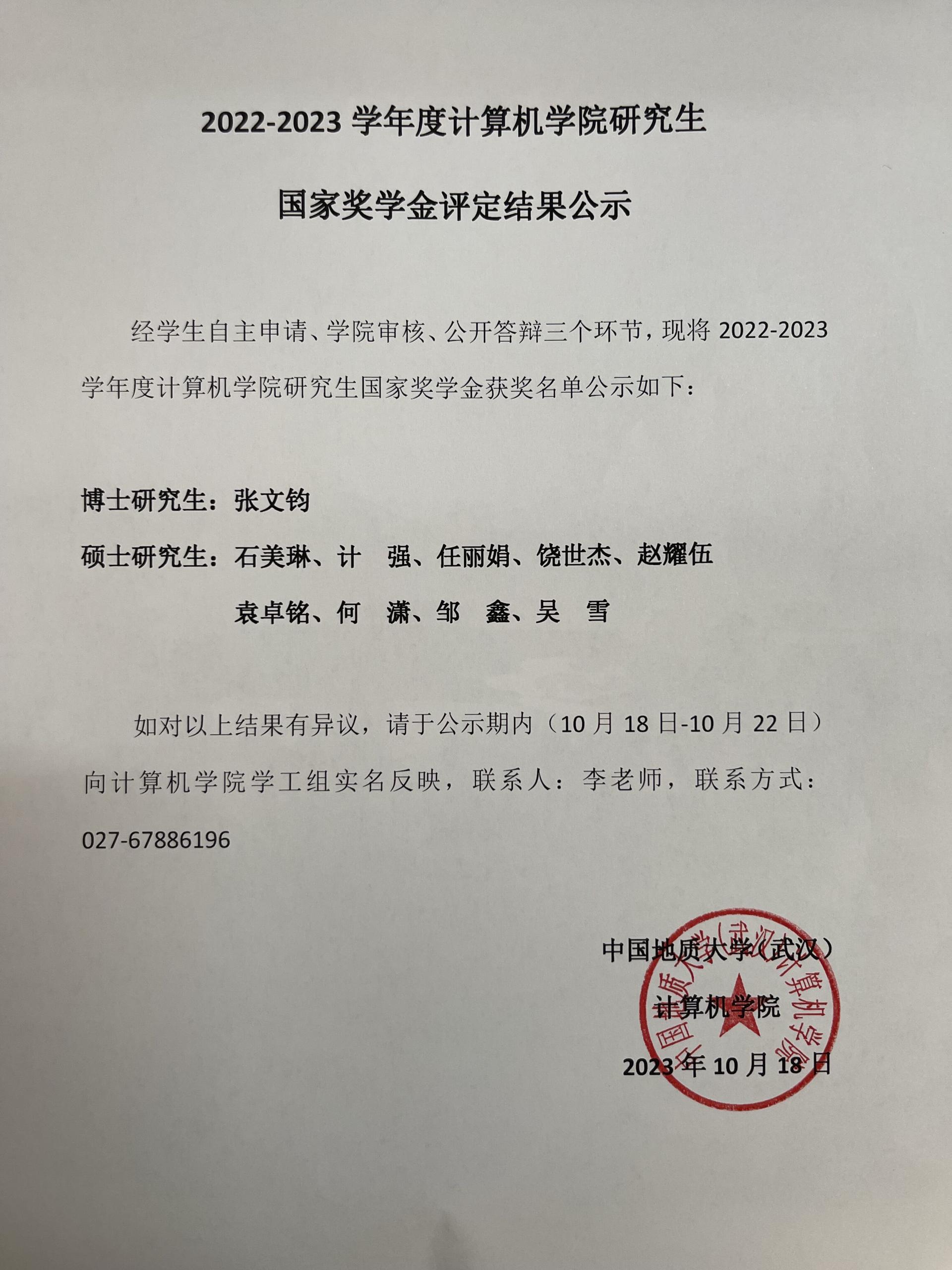 2022-2023学年度资源а√天堂中文中文在线研究生国家奖学金结果公示