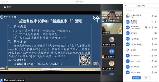 (通讯员:孙彦钦)为增进家长对学院工作的了解,进一步促进家校联动机制在育人体系中发挥有效作用,9月4日晚,我院通过腾讯会议的形式召开了2021级新生家长会。院党委书记李国昌,党委副书记傅苑,副院长陈云亮,院团委书记李欢欢,学工组全体成员以及300余名新生家长参加此次会议,李欢欢担任主持。