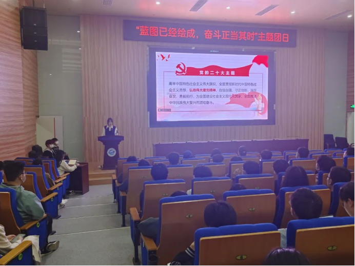 为深入学习党的二十大报告,深刻领悟党的二十大精神,切实把会议精神和行动统一起来,为中华民族伟大复兴的新征程贡献青春力量。近期,资源а√天堂中文中文在线2021级10个团支部、2022级11个团支部分别举办了以“蓝图已经绘成,奋斗正当其时”为主题的大型团日活动。本次团日活动于未来城校区资源а√天堂中文中文在线大楼126报告厅和南望山校区教三楼111教室举行,全体团员参会,会议由院团委学生会组织部副部长郭洋利主持。