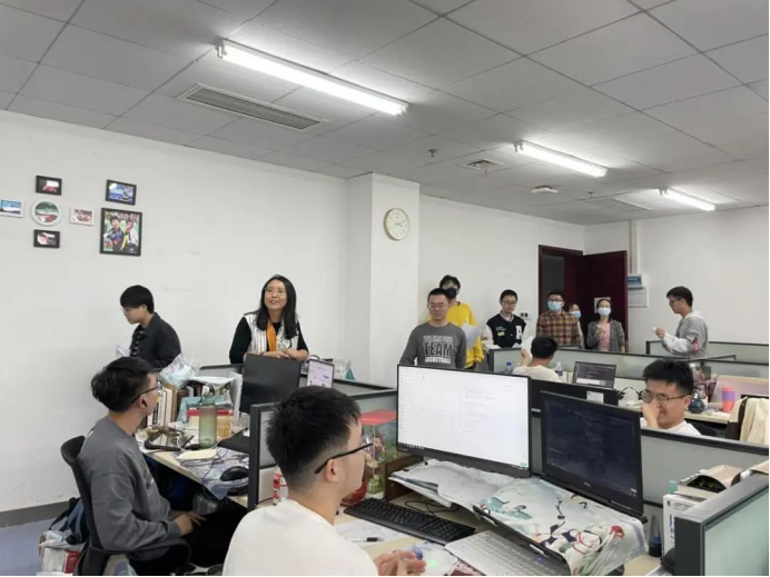 同时,走访老师也对个别实验室存在的走线安全隐患、卫生死角、物品摆放等问题进行现场指出,希望各实验室向优秀实验室学习,加强环境卫生定期打扫,打造干净、卫生、健康、向上的研学空间。