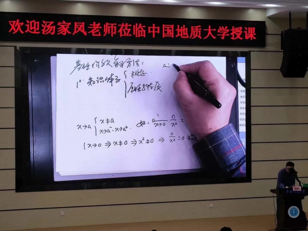 为了加强讲座沉浸感,汤家凤通过写手稿的方式教大家如何科学备战考研数学。汤家凤表示,备考中最重要的是要重视数学的基本概念。概念了解不透彻,做题时就会无从下手;对于“题海战术”,汤家凤强调不要盲目刷题,要科学刷题,将每一个知识点都打牢基础,对每一种题型都了然于胸,这样上考场就能得心应手,不会慌乱。提及整体复习规划时,汤家凤认为要先建立学科整体框架,在暑假之前打基础、建立知识体系;暑假期间开始进行知识强化,一套题做两遍,第一遍分析,第二遍总结。做好这一切后,整个知识框架就得以架构完成。