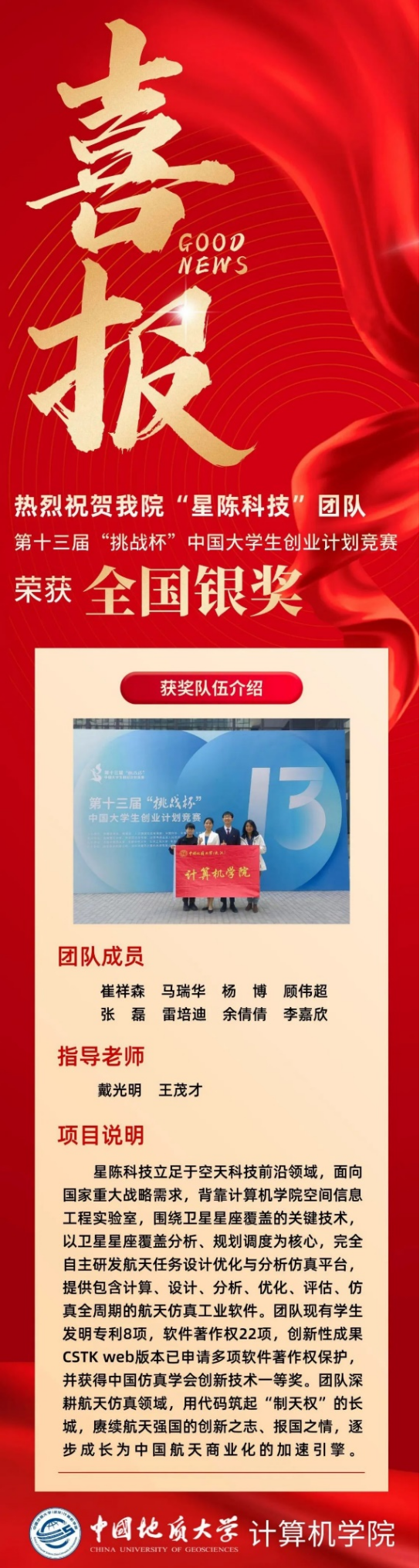 喜报 | 热烈祝贺我院“星陈科技”团队在第十三届“挑战杯”中国大学生创业计划竞赛中荣获全国银奖