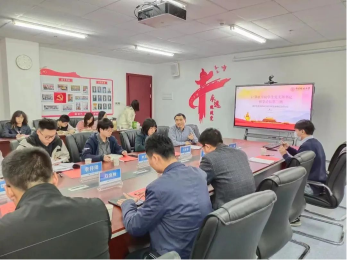 首先由王太茂介绍活动内容及参会嘉宾,并对各位老师的到来表示热烈欢迎。随后,资源а√天堂中文中文在线各学生党支部书记开展交流研讨。本次研讨会学院根据各支部特点从26个学生党支部中遴选出9个党支部,针对支部建设情况、特色活动开展、存在问题与后期展望等方面进行交流。如博士研究生党支部面向全院开办学术论坛,指导低年级同学开展科研和学科竞赛;本科生计科第二党支部积极参与社会实践,利用专业技术开发助农小程序等助力乡村振兴;2020级硕士联合党支部探讨了党员发展考核量化标准,将考核标准与支部建设有机结合。