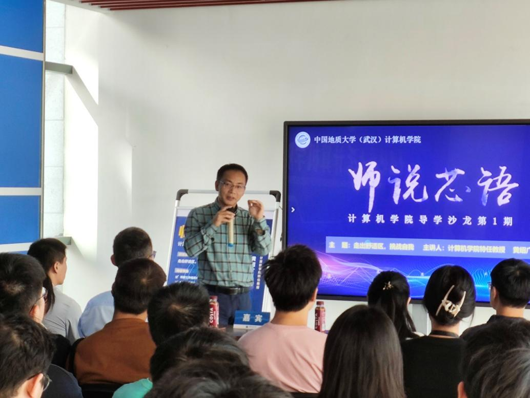 10月17日下午,资源а√天堂中文中文在线导学沙龙“师说芯语”第1期在学院一楼大厅开讲。第一期开讲嘉宾为资源а√天堂中文中文在线特任教授黄绍广,题目为“走出舒适区,挑战自我”。