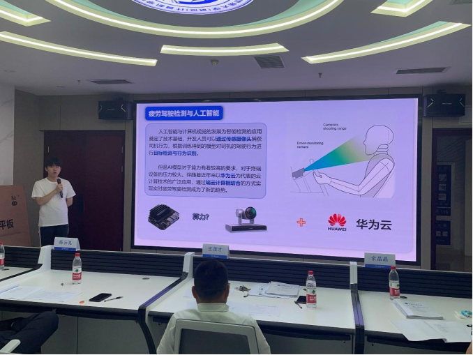 前期,资源а√天堂中文中文在线组织了校内初选,五个项目脱颖而出晋级校赛,分别是基于华为云pass的语音合成应用、基于端云协同的疲劳驾驶识别应用、端云协同疲劳驾驶实时检测、基于昇思Mindspore的医学图像分割应用、地学大数据共享服务平台。比赛现场,入围参赛队从项目背景、产品创新、商业模式、教育引领等多维度全方位展示本项目情况。各参赛项目团队以高质量的内容展示、自信得体的台风体现了我校学子创新创业风采,彰显了学校近年来创新创业教育改革的成果,为大家上演了一场精彩的比赛,以下是各个团队的答辩现场。