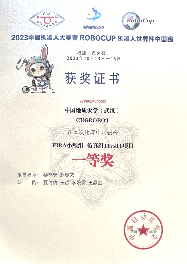 10月13至15日,2023年“中国机器人大赛暨RoboCup机器人世界杯中国赛”在福建晋江国际会展中心落下帷幕。我校资源а√天堂中文中文在线杨林权副教授和罗忠文教授指导的学生团队参赛。经过激烈的比赛,最终学生团队勇夺FIRA仿真组5vs5项目第3名,国赛一等奖和仿真组11vs11项目的第3名,国赛一等奖。