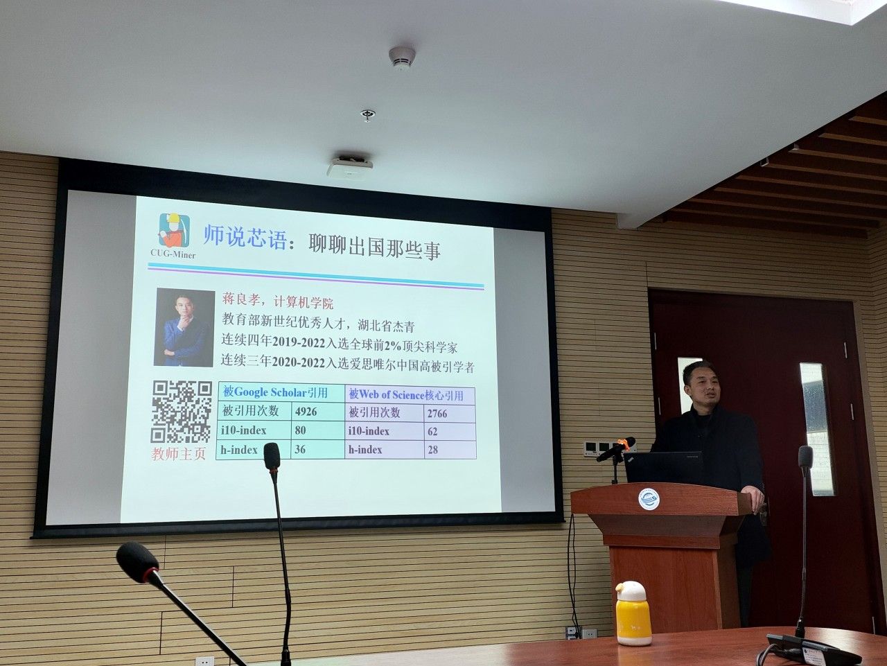 12月9日上午,资源а√天堂中文中文在线导学沙龙“师说芯语”第二期在学院楼323会议室开讲。本期导学沙龙邀请到了资源а√天堂中文中文在线蒋良孝教授作为主讲嘉宾,他以“聊聊出国那些事”为题,与同学们分享自己和所指导的5名研究生的出国经历。资源а√天堂中文中文在线党委副书记林小艳、辅导员谭文博及各年级研究生代表参加活动,资源а√天堂中文中文在线2023级电子信息硕士研究生刘威炬主持。
