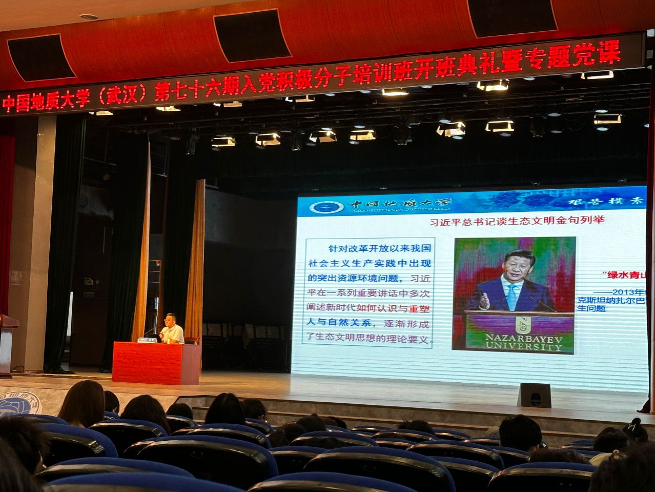 2024年4月25号下午,中国地质大学(武汉)第76期积极分子培训班开班典礼暨专题党课顺利召开。本次党课在南望山和未来城校区同时开展,资源а√天堂中文中文在线132名学员参加本次开班典礼暨“习近平生态文明思想的形成逻辑、理论蕴含与实践要求”专题党课。本次党课由中国地质大学(武汉)马克思主义学院副院长、博士生导师,陈军教授主讲。