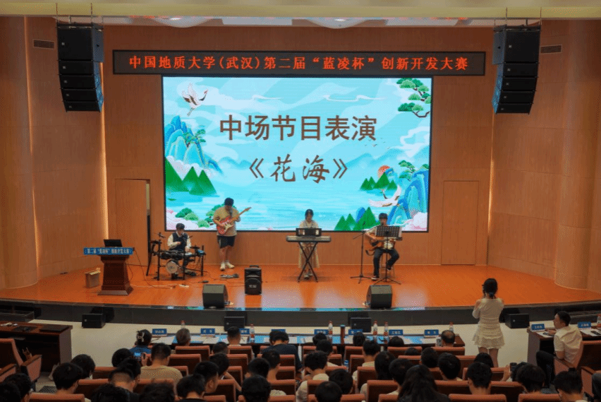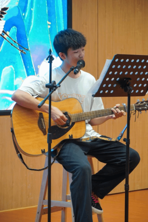 在精彩的中场表演环节,钟芷芊同学以空灵婉转的嗓音深情演绎《雨爱》,每一个音符都饱含着细腻情感;胡鑫同学怀抱吉他,用清澈而富有穿透力的歌声奏响《花海》,将现场氛围推向高潮。