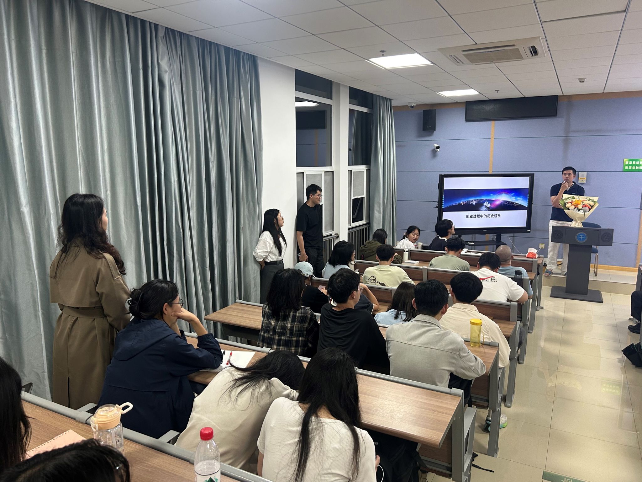 同学们在听完分享后,纷纷表现出浓厚的兴趣,现场气氛十分热烈。同学们就创业过程中的股权分配、就业工作中的核心竞争力、企业对求职者的核心要求等提问。