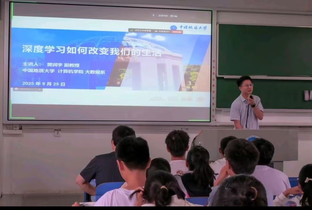 报告会得到了自然资源信息管理与数字孪生工程软件教育部工程研究中心、智能地学信息处理湖北省重点实验室、智慧地质资源环境技术湖北省工程研究中心、全空间智能信息处理技术及系统湖北省中试基地等科研平台的支持,也是我院建设的武汉市科普基地的活动之一。本次活动成功搭建跨学科交流的高层次平台,拓宽了2025级本科新生在人工智能前沿应用领域的学术视野。生动展示AI在日常生活、教育教学、航天、地质、网络安全等领域的创新实践,有助于推动我校相关学科的交叉融合与创新发展,对提升师生的科学素养和创新能力具有重要意义。